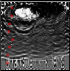 This seems to have done a kind of OK job, but clearly the ripples are still causing a lot of problems and it completely loses the bottom of the circle. You can also see in the gradient view that most of the effort is going towards the close-in stuff.