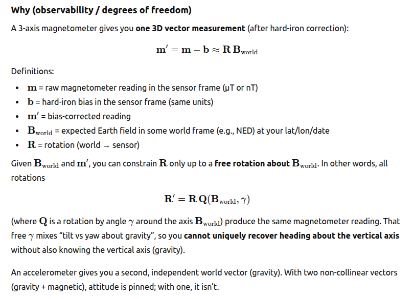 Since the location of the pcb is known from the gps, the expected magnetic field vector can also be calculated. But, this does not get us all the way. As Mr GPT puts it: