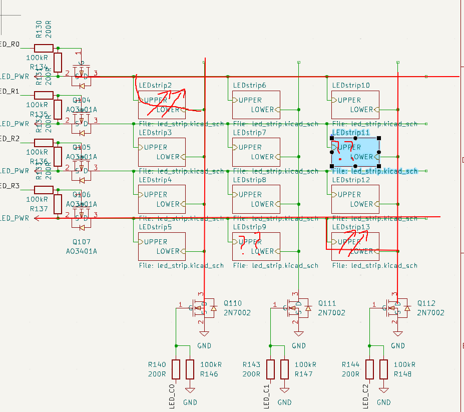 When I pasted the schematics in for a design review, gemini also pointed out that GPIO 12 was read on bootup to set the voltage of the internal flash, and so I could not use it to drive the LED matrix. Nice catch. I don’t know if I read the subsequent recommendation properly, but anyway I put a pullup on IO 12 when I should have put a pulldown instead. oh well.